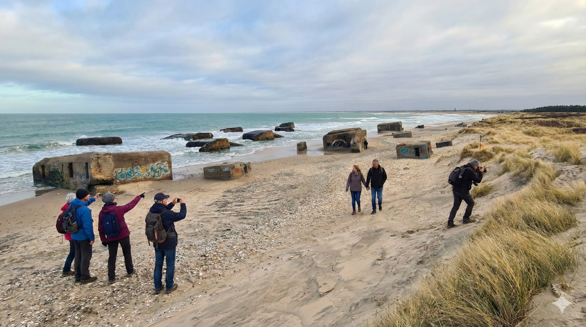 По пути заедем в старый прибрежный форт — сегодня это музей, где хранятся бункеры Второй мировой войны. Огромные бетонные сооружения у самого берега моря выглядят внушительно и немного сурово, напоминая о непростой истории Европы.